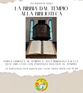 15 agosto 2025, Mostra e Visita guidata: “La Bibbia: dal Tempio alla biblioteca”.