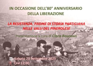 Sabato 20 settembre 2025 ore 17 presso il Municipio di San Germano Chisone – Clara Bounous presenta il libro “La resistenza. Pagine di storia partigiana nelle valli del pinerolese.”