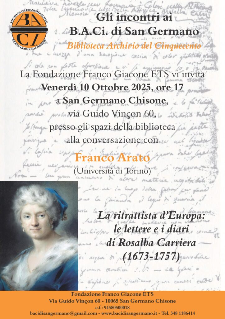 Venerdì 10 ottobre 2025 – Franco Arato (Università di Torino) – La ritrattista d’Europa: le lettere e i diari di Rosalba Carriera (1673-1757)